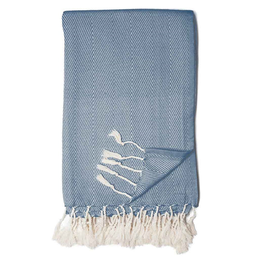 Zestt - Organic Cotton Herringbone Throw Blanket - Marine