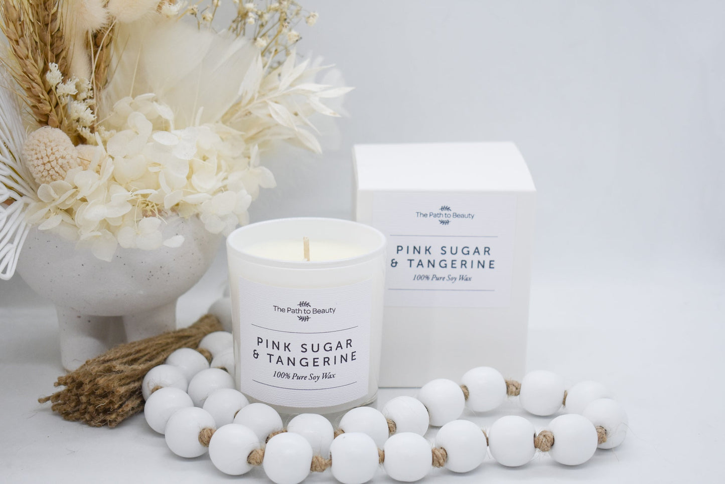 The premium white vessel features a sleek, elegant design that complements any décor, while the cotton wick ensures a clean, even burn. Made from high-quality soy wax, this candle offers an impressive burn time of approximately 50 hours, providing long-lasting ambiance.