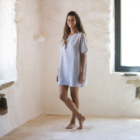 The summer essential marine and mini come together and become the comfiest resort wear Sile Marine T-Shirt Dress.