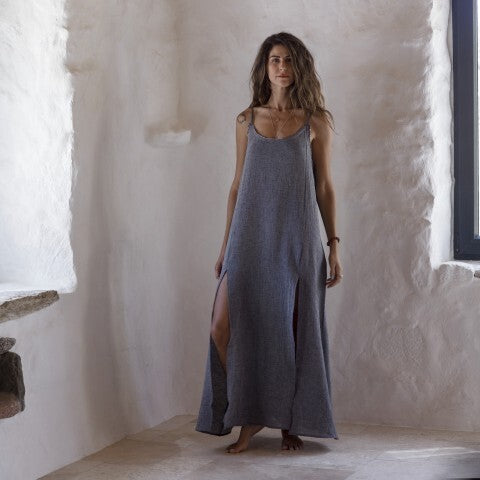 With four deep slits, it is the stylish maxi dress of summer. Whether lounging early evening or at a party with friends, you will catch the eye of everyone.