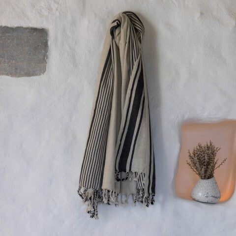 Loom.ist Striped Linen Turkish Towel - Natural/Black Stripe