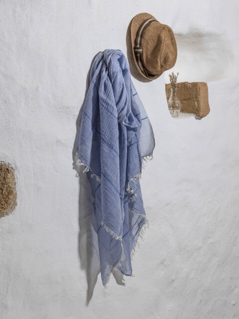 Wrap our Helen Gauze scarf around your neck as you step out of the house. The scarf will become the necessary finishing touch to your every outfit, granting you a refreshed feeling you can bring along with you.