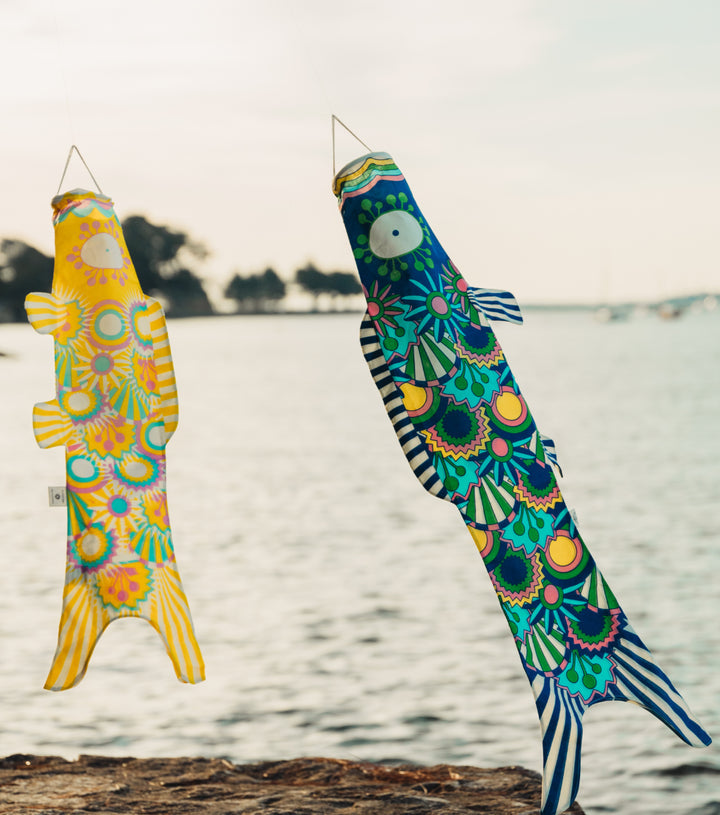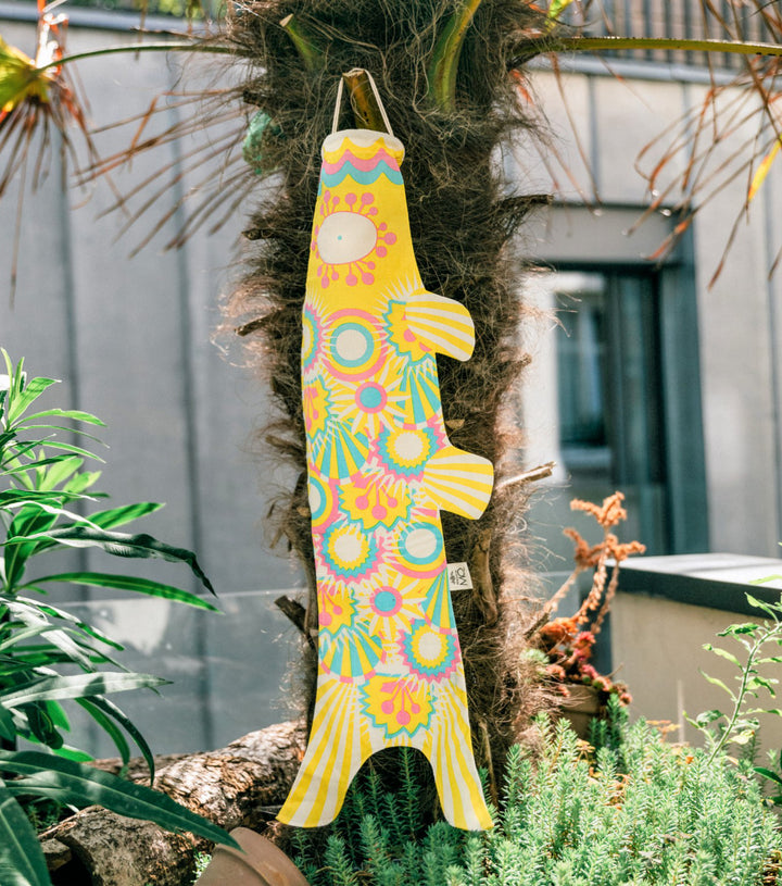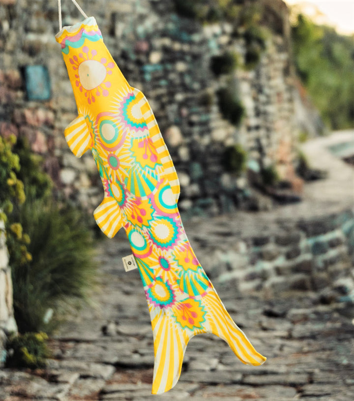 Sunshine in your eyes! Why deprive yourself of it? With the Sunshine koinobori, and its seventies look, the Japanese designer Yukari offers you a bubble of joy, warmth and well-being that reminds us of our childhood summer and its moments of great freedom. There is no doubt that this koinobori illuminates all those who look at it!